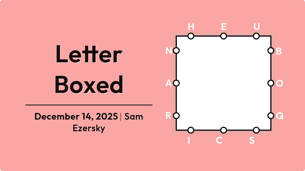 14 December, 2025 Letter Boxed Answers. We solved this puzzle for you. You may start to form words, in whichever direction you prefer enough that you form: