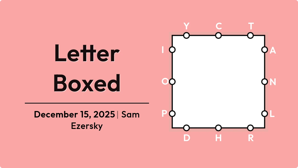 15 December, 2025 Letter Boxed Answers. We solved this puzzle for you. You may start to form words, in whichever direction you prefer enough that you form: