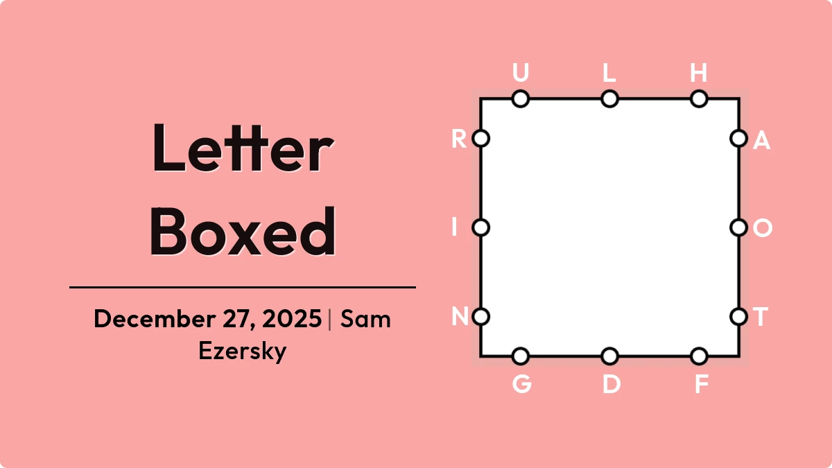 27 December, 2025 Letter Boxed Answers. We solved this puzzle for you. You may start to form words, in whichever direction you prefer enough that you form: